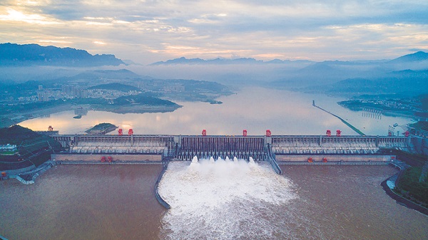 三峡大坝位于湖北省宜昌市境内的三斗坪,是三峡水电站的主体工程,也是目前世界上最大的混凝土水利发电工程。三峡大坝于1994年12月14日正式动工修建,2006年5月20日全线建成。 新华社发 郑家裕/摄