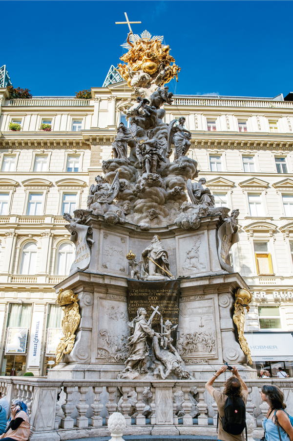 在人类历史上曾经历过很多场瘟疫灾难,其中黑死病无疑是最严重的瘟疫之一。这场瘟疫使得欧洲2500万人丧命,也改变了欧洲甚至世界的发展进程。图为位于奥地利首都维也纳最繁华的格拉本大街的黑死病纪念柱,这座巴洛克风格雕塑的代表作,有着重要的纪念意义。 袁亚新/摄
