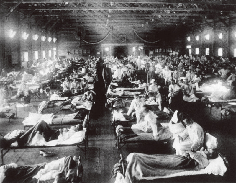 图为1918年,美国用以隔离治疗流感患者的“方舱医院”。(资料图片)