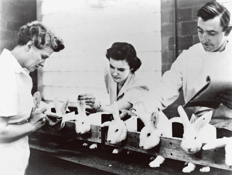青霉素的发现为人类同传染病的斗争做出了巨大贡献。图为1943年,美国一家青霉素工厂在做青霉素动物实验。 新华社发(资料图片)